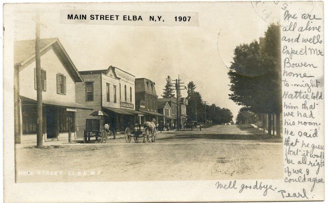 In the late 1800’s the center of the Village was a vibrant business and industrial center. Located near the intersection of Main, Mechanic and Chapel, you could find the Elba Hotel, Tornado Windmill Company, a tannery, grocery, crockery, machinery and stave yard. Elba was also the first place in New York State to have rural mail carriers. In 1886 Russell Crosby was sworn in as the first rural carrier in the United States.